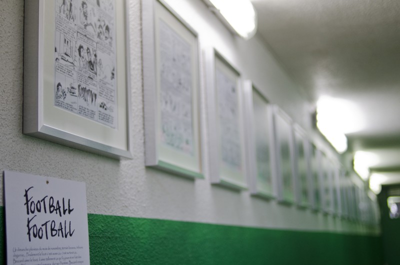 Les planches sont accrochées dans le Saint des saints, l’antre secrète où l’on ne pénètre jamais : le vestiaire du stade ! Qui plus est le vestiaire de ce club mythique du Red Star !