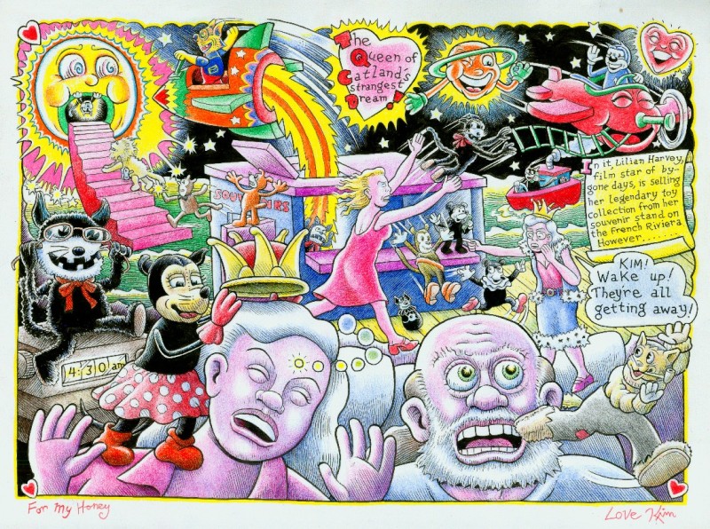 Première exposition consacrée à Kim Deitch en France, auteur majeur du mouvement underground américain qui n’a cessé de construire une œuvre conséquente, occupant tous les formats possibles, du strip hebdomadaire au graphic novel. Deitch manifeste un profond intérêt pour l’histoire de l’entertainment américain, et l’exprime graphiquement par un style mêlant le psychédélisme, les bandes dessinées historiques et les illustrations d’époque victorienne. Ses histoires constituent une gigantesque tapisserie narrative aussi riche que celles créés par Hergé ou Carl Barks. L’exposition entrouvre une fenêtre sur une carrière et une œuvre tentaculaires.