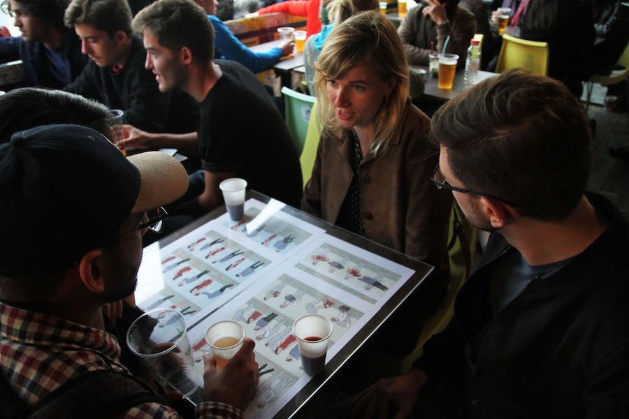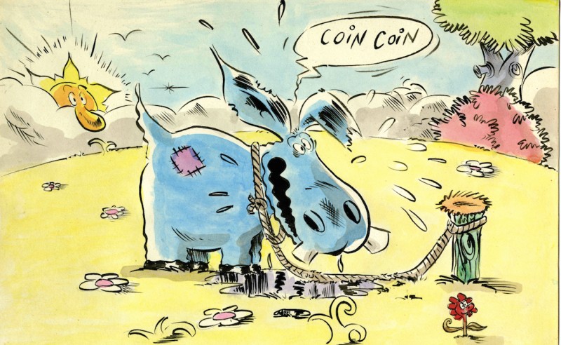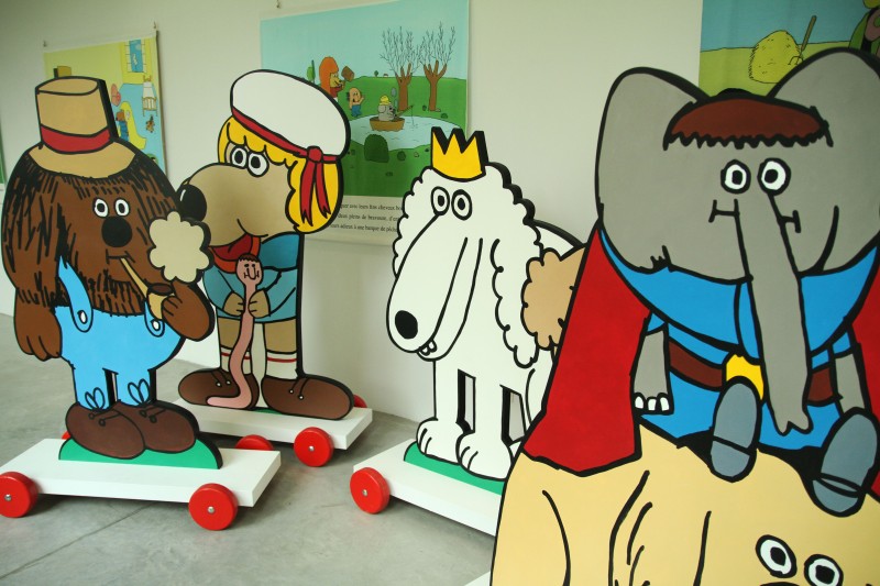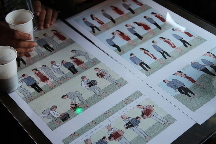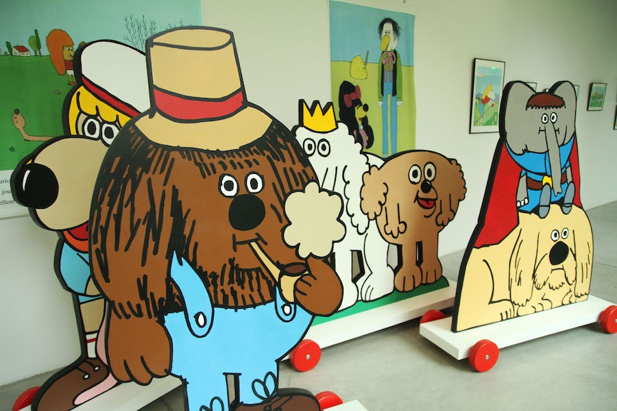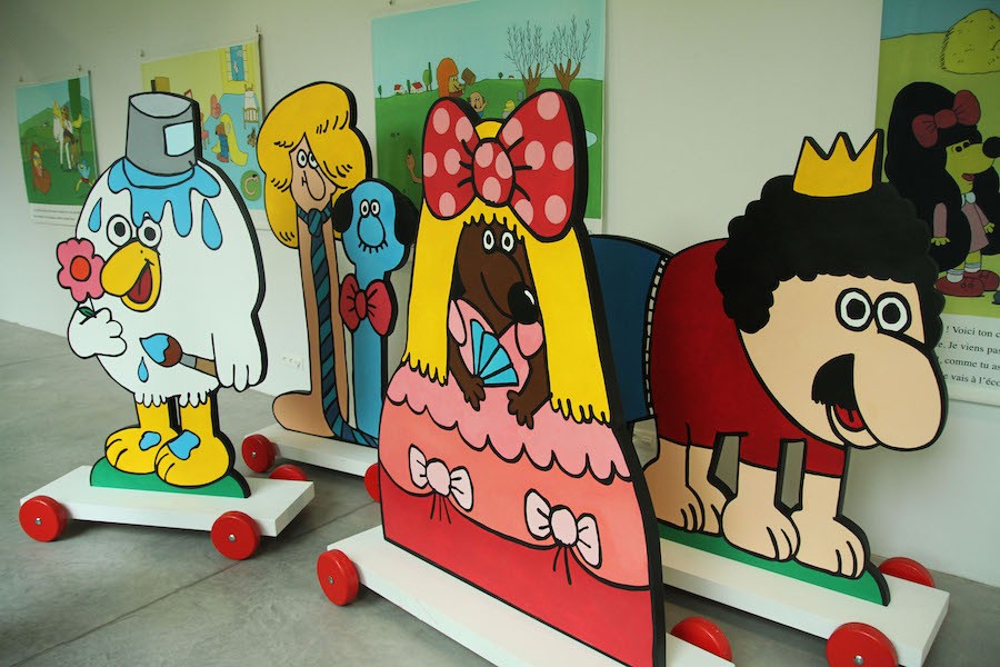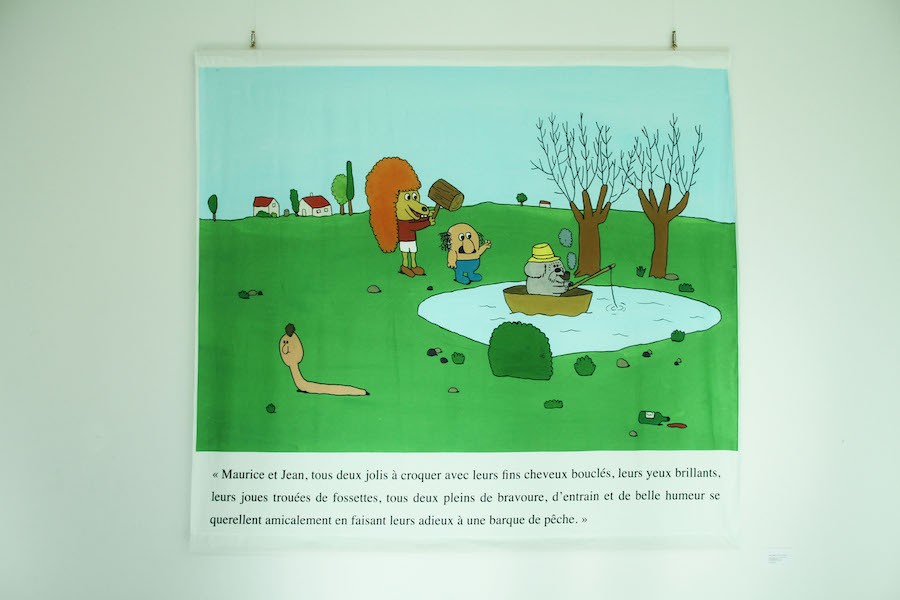 Pour Formula Bula, elle met sa blouse de chercheuse pour revisiter le fonds de l’Heure Joyeuse. L’auteure reprend des textes issus de vieux albums illustrés piochés dans le fonds et leur paie un sacré tour de manège dans son paysage graphique hilarant. Anouk Ricard, convoque pour cette exposition originale, un cheptel de glandeurs à moustaches, en salopette, en slip ou tout nus pour nous baragouiner leurs salades... Et nous, on rigole, on rigole, on rigole, avec, bien sûr, un morceau de salade coincé entre les dents...