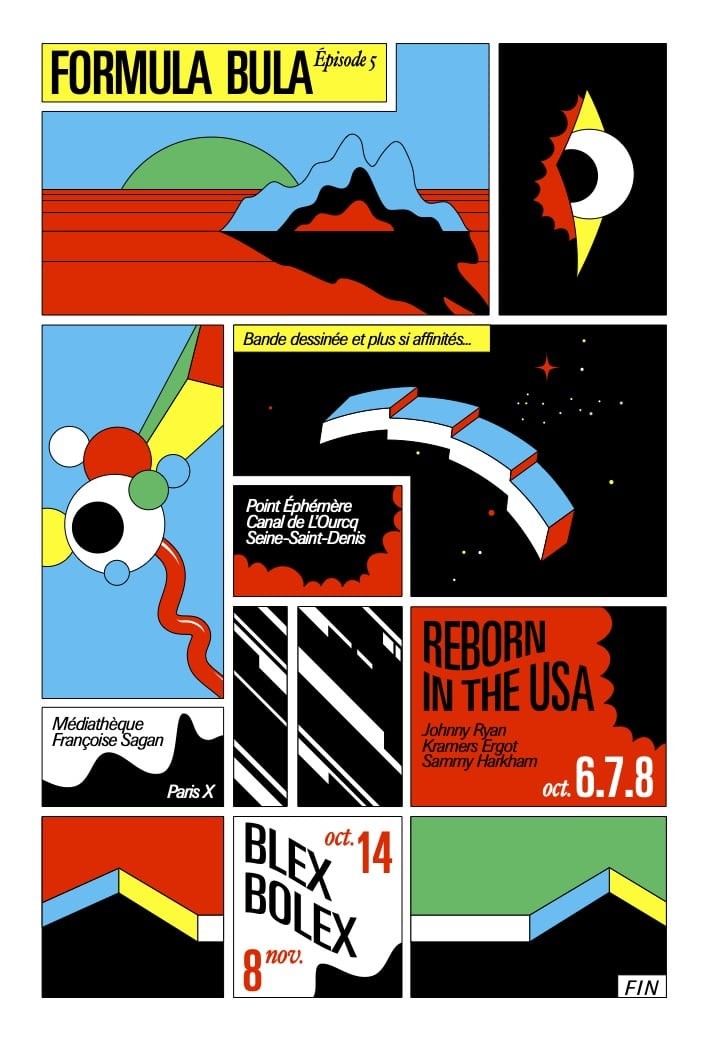 Formula Bula ne révise pas, se couche tard, répond jusque dans les dents et souvent à côté de la plaque. En pleine poussée de sève et la moustache duveteuse, du 06 au 15 octobre, le festival de bande dessinée parisien prend le large et s’en va traîner partout dans le dixième arrondissement jusqu’à Pantin en Seine-St-Denis ! Incorrigible, Formula Bula a 5 ans et continue de zieuter ce qui est mal vu, de marcher sur le fil du rasoir et de parler trop fort. Alors, si vous aussi vous militez contre le changement de saison, prolongez l’été avec Formula Bula, le festival de Bande dessinée et plus si affinités qui piétine l’ennui, méprise le marasme ambiant et courtise le plaisir !