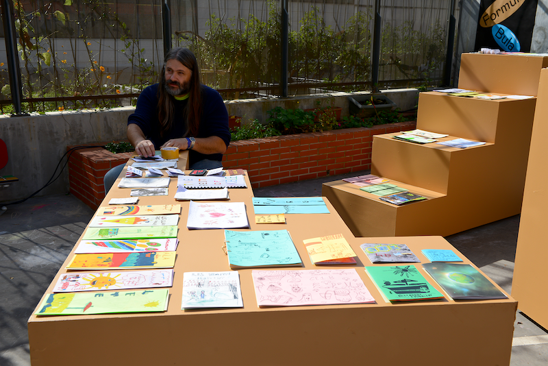 Il s’engage après son diplôme dans l’organisation du Fanzines ! Festival à Paris, fédérant un groupe d’auteurs, d’illustrateurs autour de l’organisation d’expositions et de rencontres.