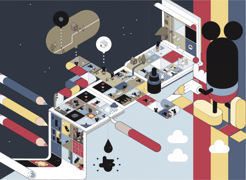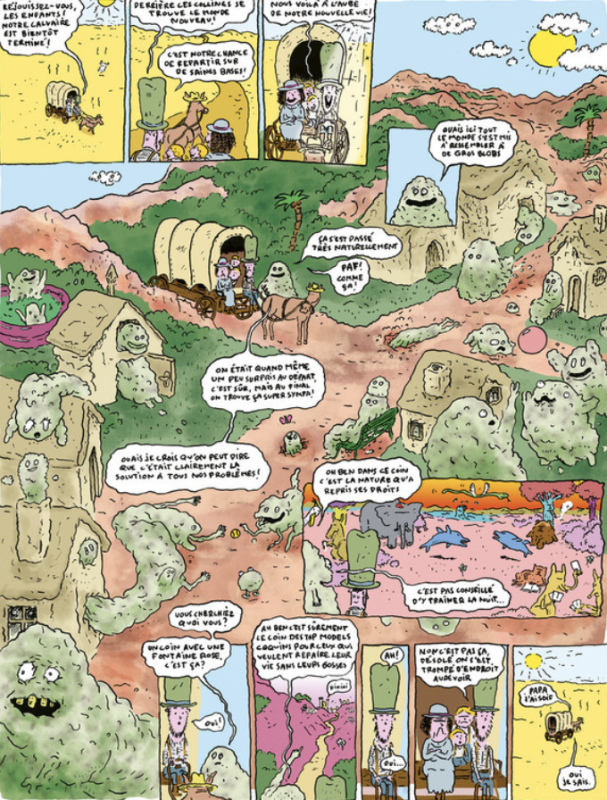 offre d’épuiser une forme ou de réduire un motif en une série d’actions minimales. Dessinées et mises en couleurs par ordinateur, ses images imposent un trait ferme et une colorimétrie pastel, rendant son univers graphique quelque peu irréel et « Hors sol ».